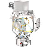 当物料到达顶部时,物料会向下滑动,并被锥体再次引导向外。在上升螺旋和下降运动的交界区域进行均质化处理。这个过程既温和又有效。在大约 20 到 30 转之后,达到了理想的混合质量,实际上无法再改进。然后,排料器下降几厘米,从而实现快速且高达 100% 的残留排空。