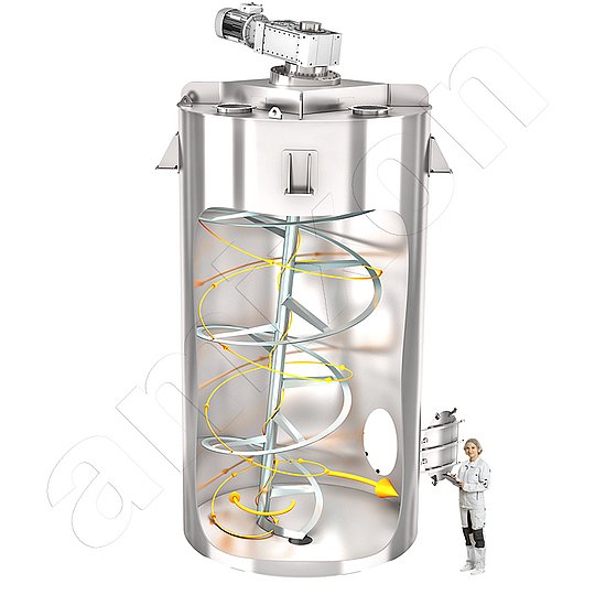 amixon® 螺旋混合机可以具有非常大的物质和热交换面积