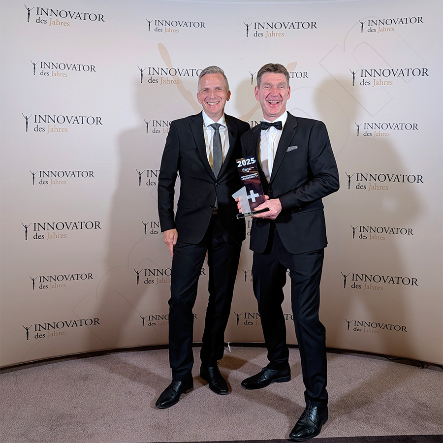 德爾 ife「創新獎 1+」 在「2025年度創新者」頒獎典禮上,amixon GmbH 榮獲此殊榮。頒獎典禮在柏林隆重舉行。總經理 Matthias Böning 和 Bernd Fraune 親自上台領獎。
