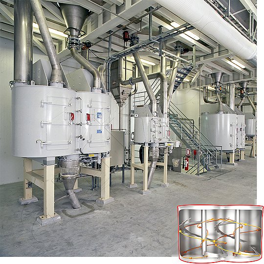 Gyraton® 混合机的可用容积为4000升,可作为一台测试设备使用。实验结果可推测为大型设备,为投资决策提供可靠的依据。