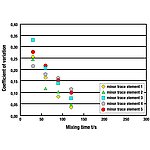 由于无死角的流动,在大约 20 至 90 转后就可达到技术上理想的混合品质。 这种混合品质(理想的随机分布)在实际中已无法再提高。 amixon® 混合过程具有独特的节能效果。 混合工具的周边速度通常在 0.5 m/s 至 2 m/s 之间,并可调整。